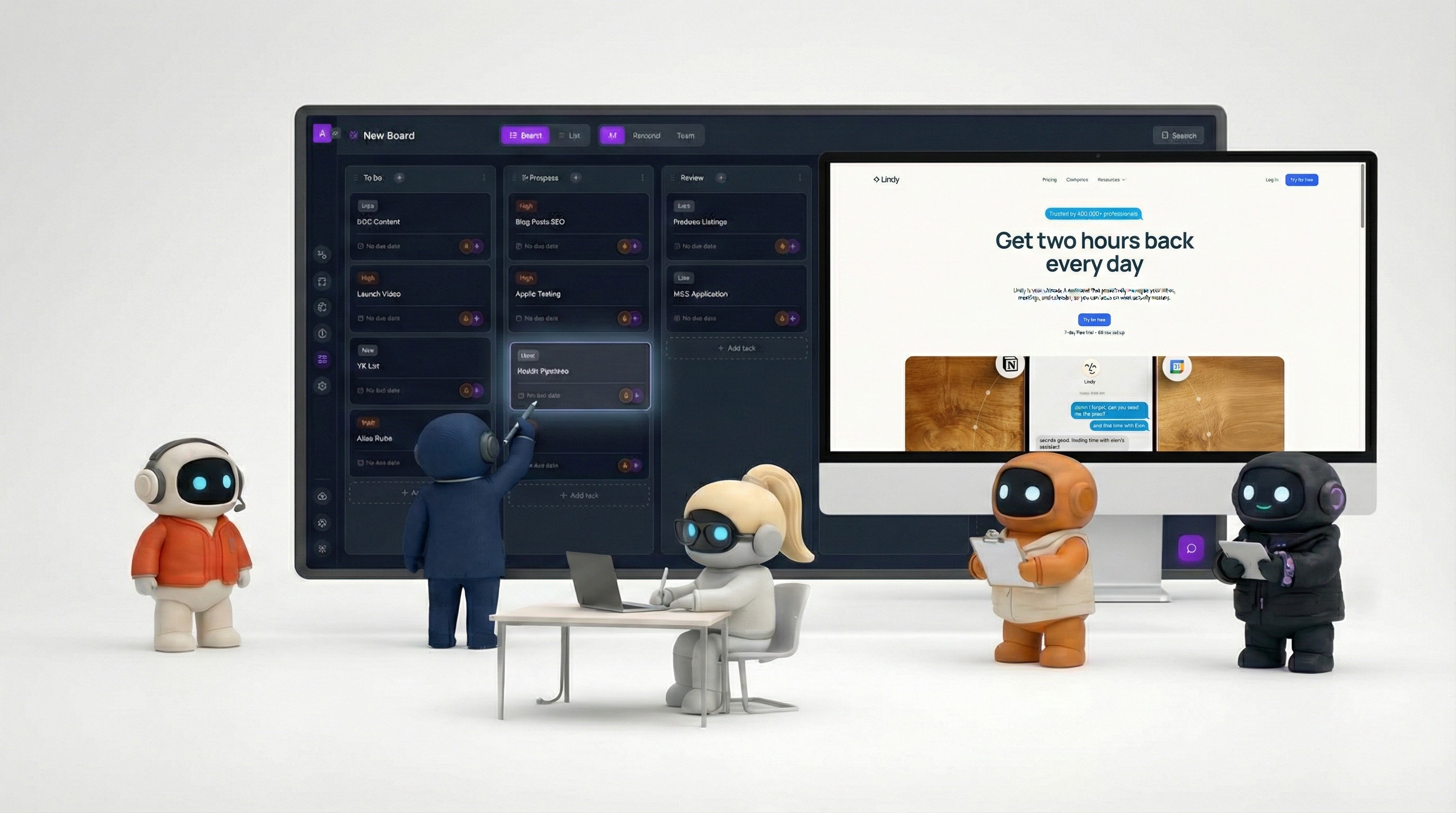 Lindy is primarily a workflow automation platform, not a team workspace. There's no built-in document editor, no team channels, no shared Kanban boards. Your agents execute tasks, but the rest of your work — documentation, project management, team communication — happens elsewhere.